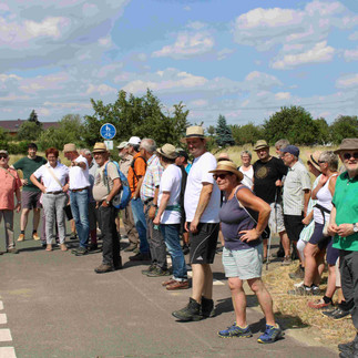 Werneck feiert dieses Jahr sein 800-jähriges Jubiläum. Die Idee des Organisationsteams, einmal mit den Bürgerinnen und Bürgern die Grenzen von Werneck abzuwandern, fand großen Anklang. Zum Start erschien Bernhard Meyer, um die 38 Grenzwanderer herzlich zu begrüßen und auf den Grenzgang einzustimmen. Die Gemarkung hat eine Fläche von 408 Hektar, davon 98 Hektar Ackerland, 13 Hektar Wald und den Schlosspark mit 25 Hektar.